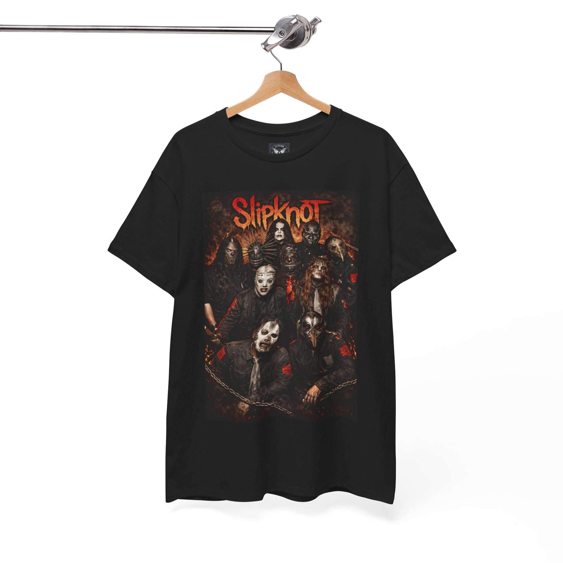 This tee carries a quiet, deliberate energy — a slip‑knot inspired design printed on a classic crew shirt that feels like a conversation starter. Lightweight yet sturdy, the fabric lays flat for crisp artwork and wears in without losing shape. Picture an evening at a small, dim venue: the guitar hums, a crowd leans in, and your shirt keeps the focus on the art and story. It sits comfortably on rehearsals, road trips, and nights where music matters most, folding easily into the routines of people who live for riffs and honest, lived‑in style.